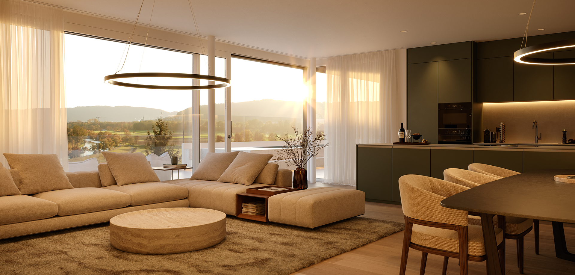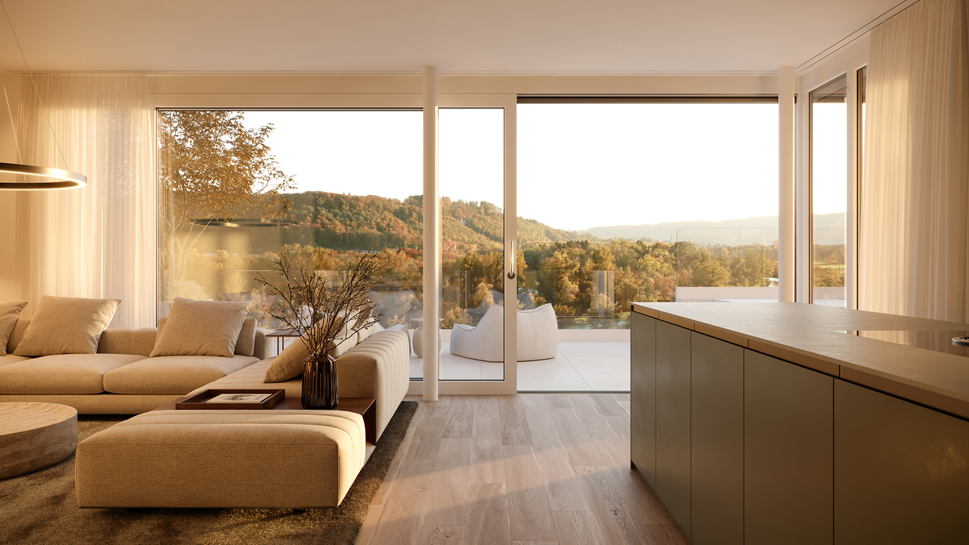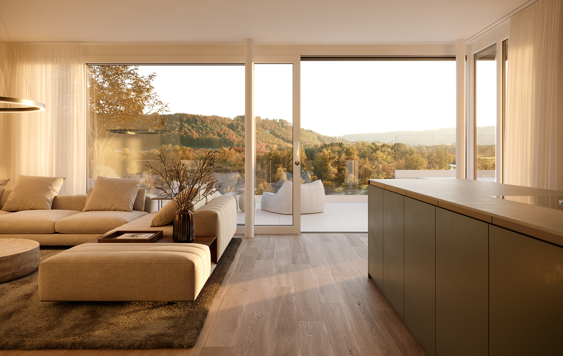 Treten Sie ein, und lassen Sie sich vom phänomenalen Panorama faszinieren, das sich Ihnen durch die grossen Fensterfronten präsentiert.